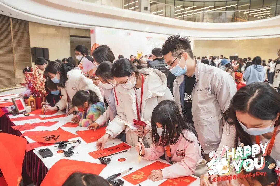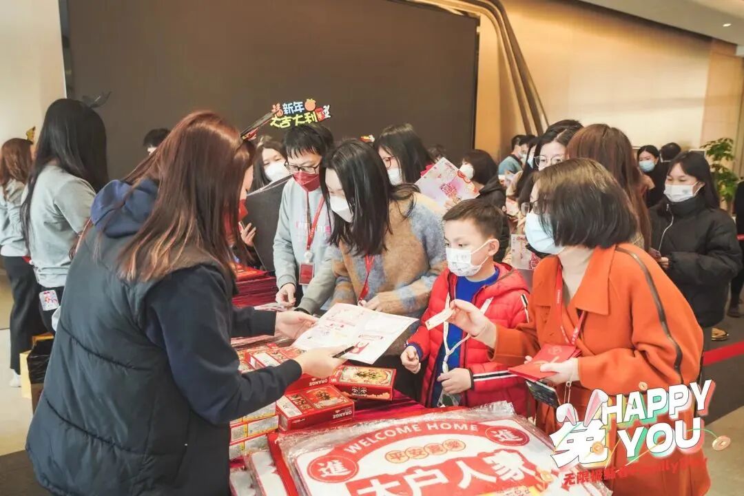 无限极就在开工日这天组织了一场家庭日活动,邀请超千名员工及家属欢聚一堂,一同开启新年新征程!活动日现场,庙会游园齐欢乐,开工大吉氛围浓 。除了派发红包,现场还有丰富多彩的活动专区,员工和家属们开心地参与趣味游戏,写福拓印,品尝美食特产。