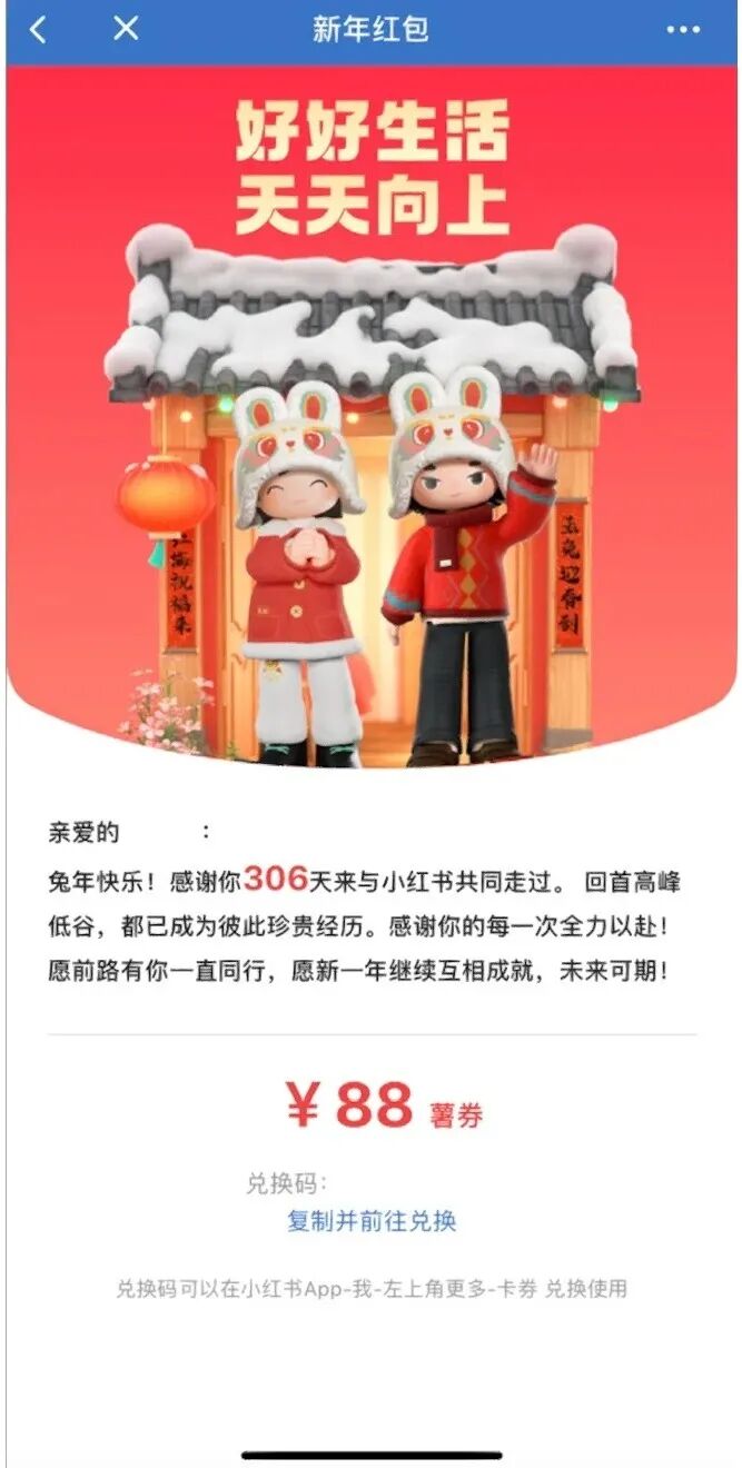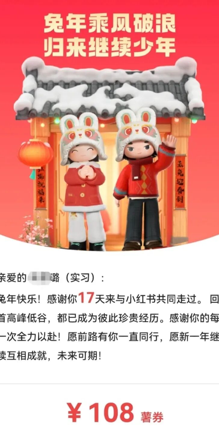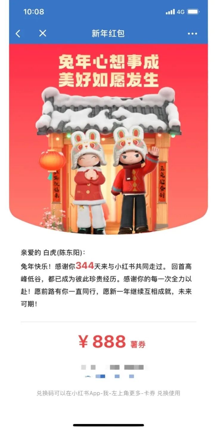 小红书的开工红包也是线上发放的,部门为大家发放了随机金额的薯券。