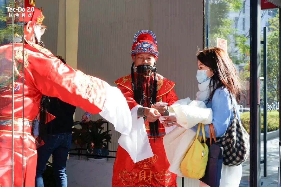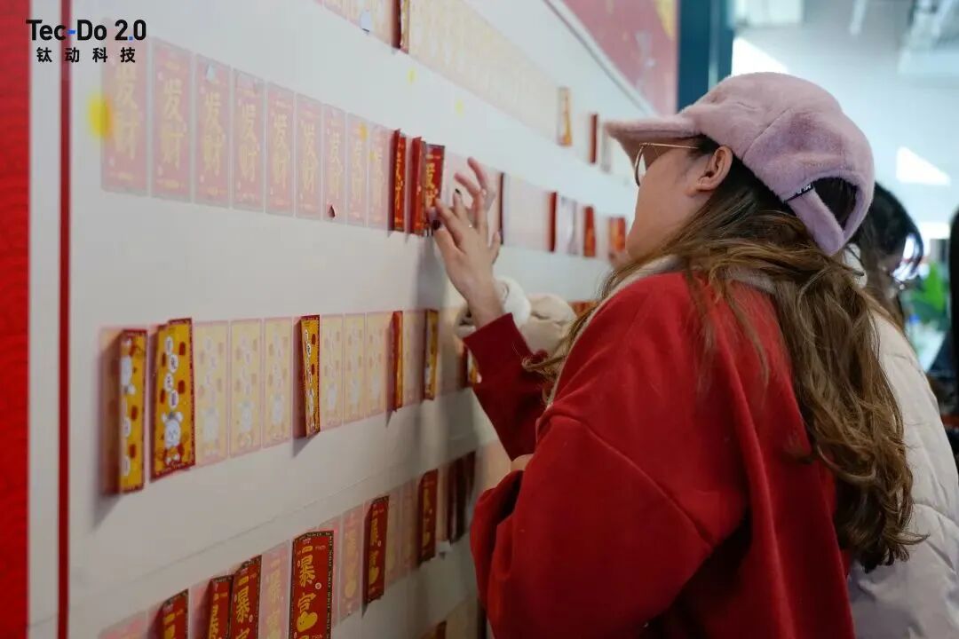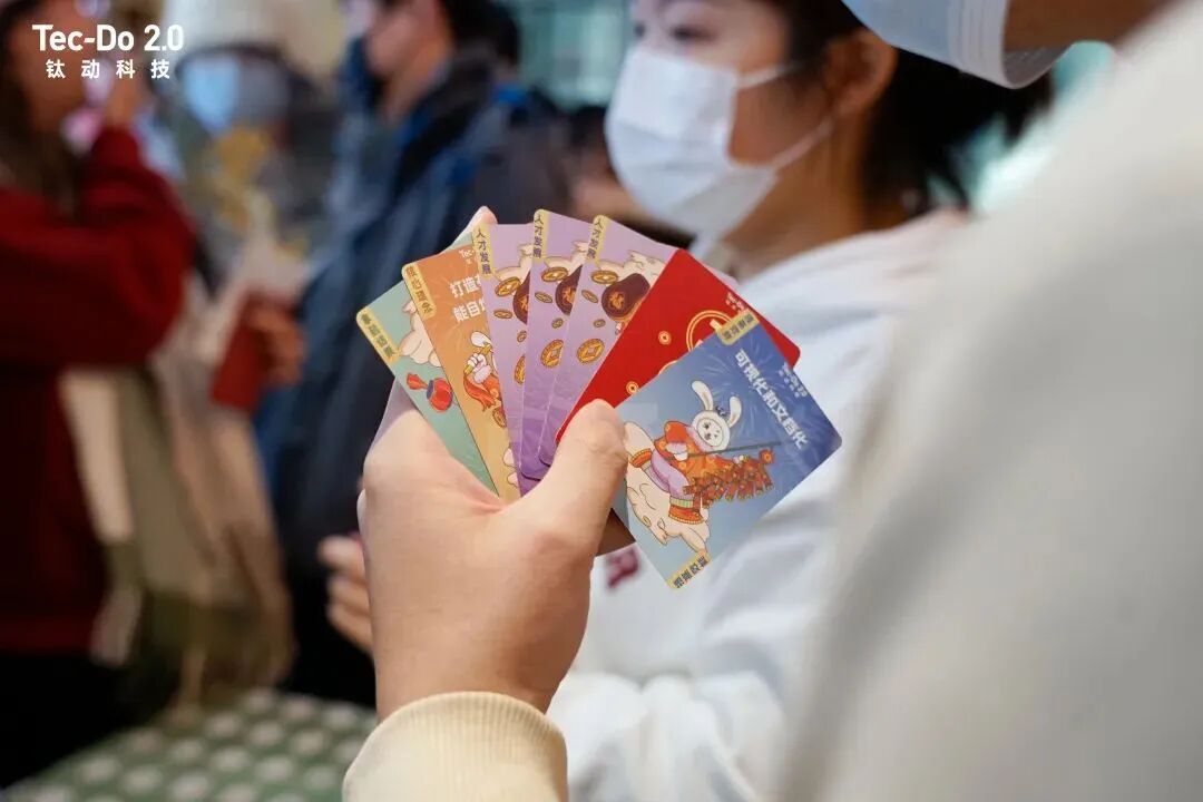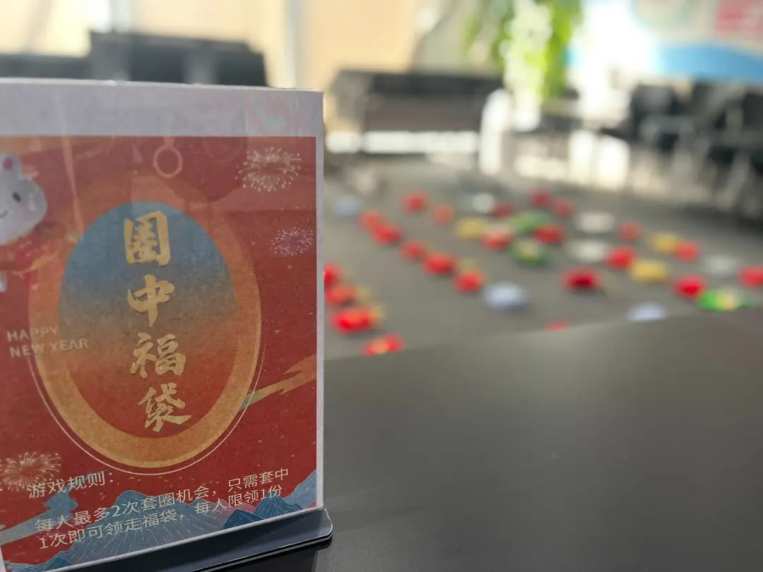 钛动来了一场新春MINI庙会,共有四个摊位:福气红包墙,抽福包赢爱马仕;钛了个兔挑战赛,原创桌游PK,赢Dior;忆童年糖画&甜蜜蜜棉花糖;未来邮局,写下新年愿望,2023年最后一个工作日慢递到工位。