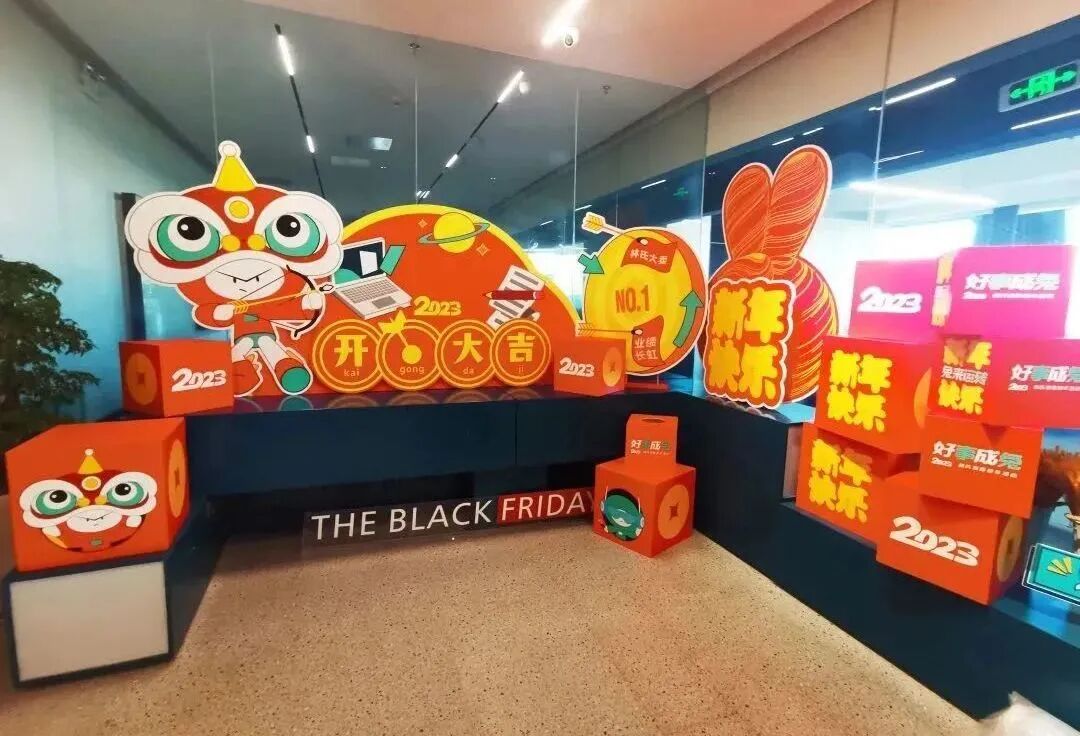 豹趣科技则是用各种摆件将前台区域装饰出了新年气氛。