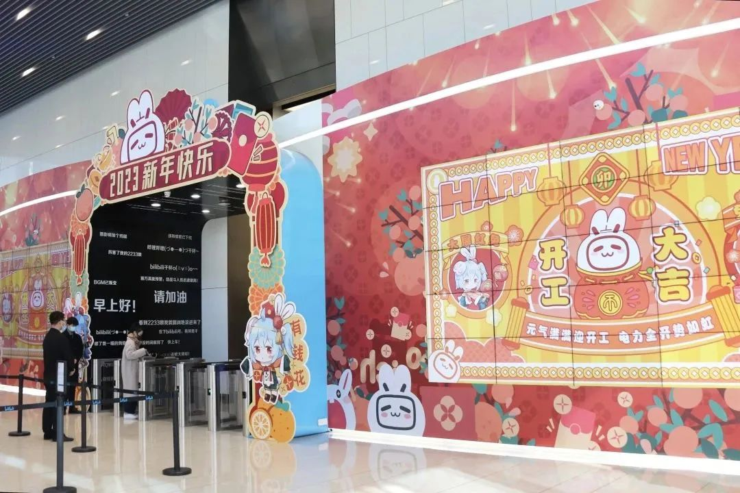 而哔哩哔哩是在工区的入口处和大厅做了美美的新年装饰,让小伙伴们从进公司门开始就感受到新年喜庆的气息。