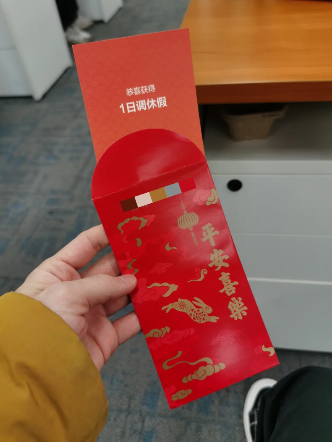 还有的公司开工日的红包里不是红包,而是1天的调休假,这哪个打工人能拒绝啊!