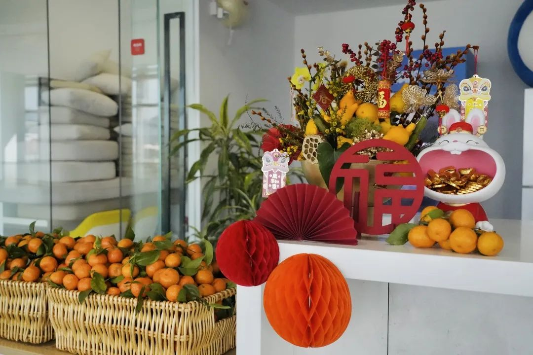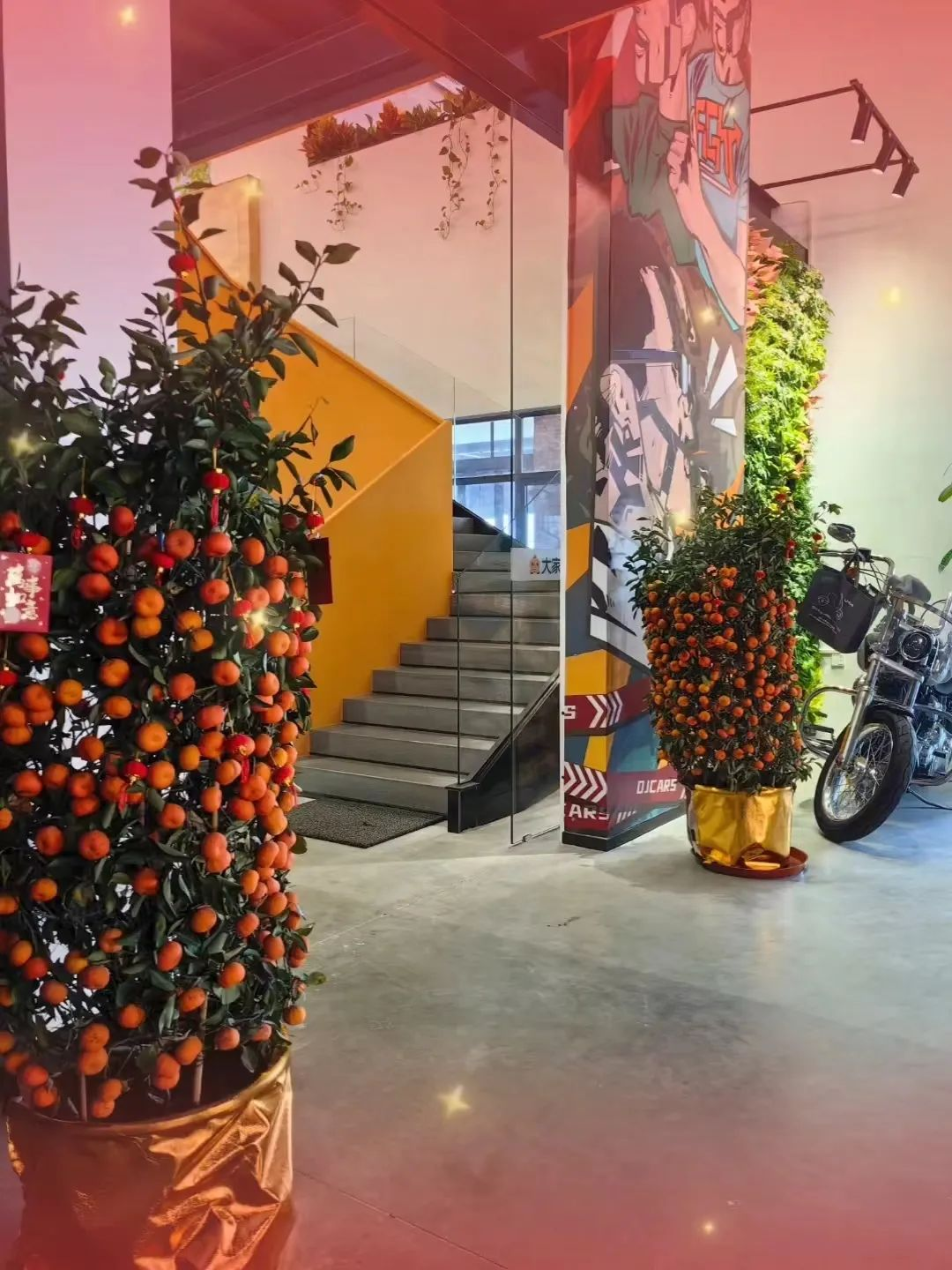 大家车的布置很有意思,在办公区摆放了橘子树,新的一年,大吉大利,收获满满!好看好吃又有寓意。
