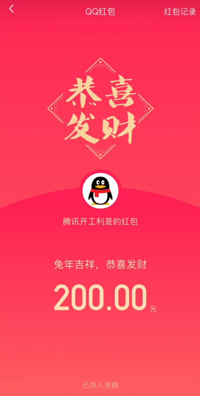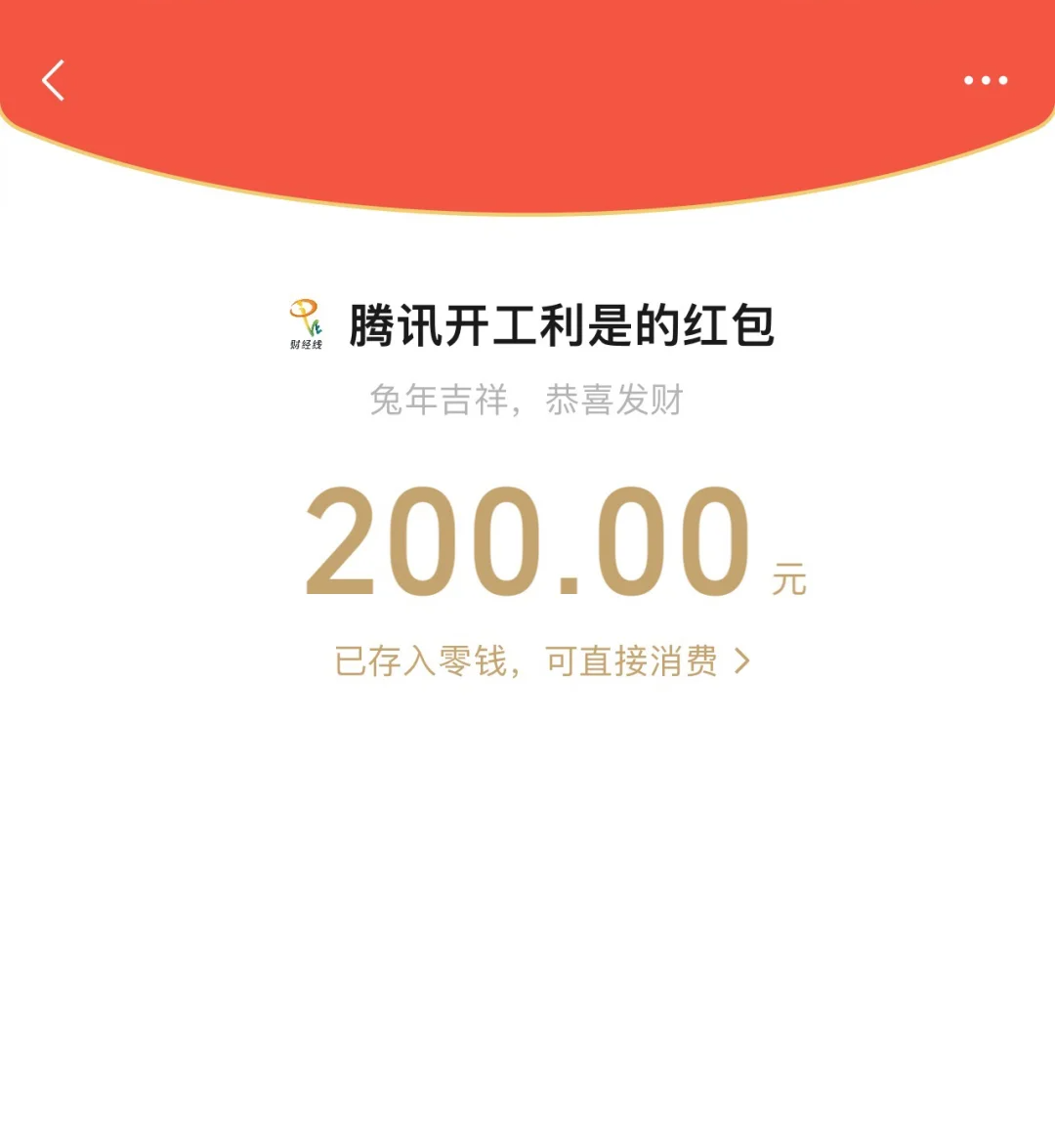 腾讯每年的开工利是都简单粗暴,直接线上发红包,微信、QQ各200。(就喜欢这么直接的老板🥰)
