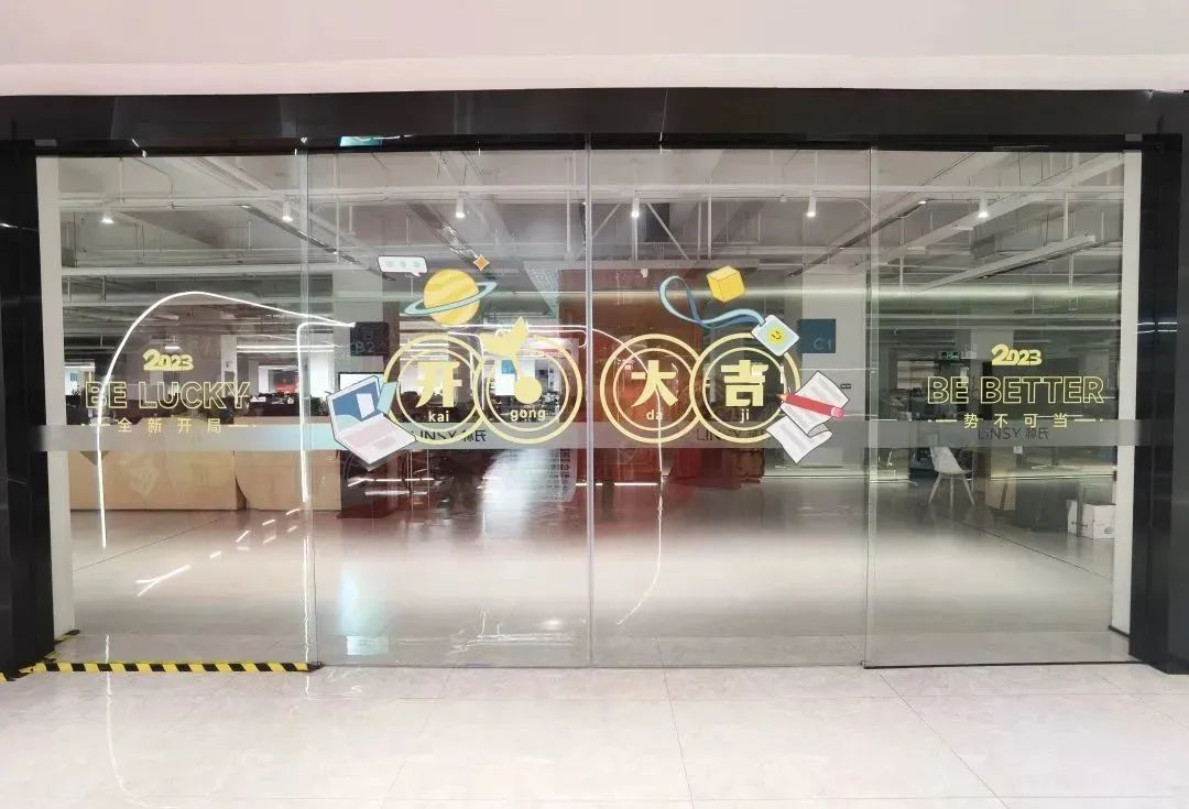 飞鱼科技从公司入口处到前厅铺上长长的红毯,开工第一天,开工大吉、一红到底。