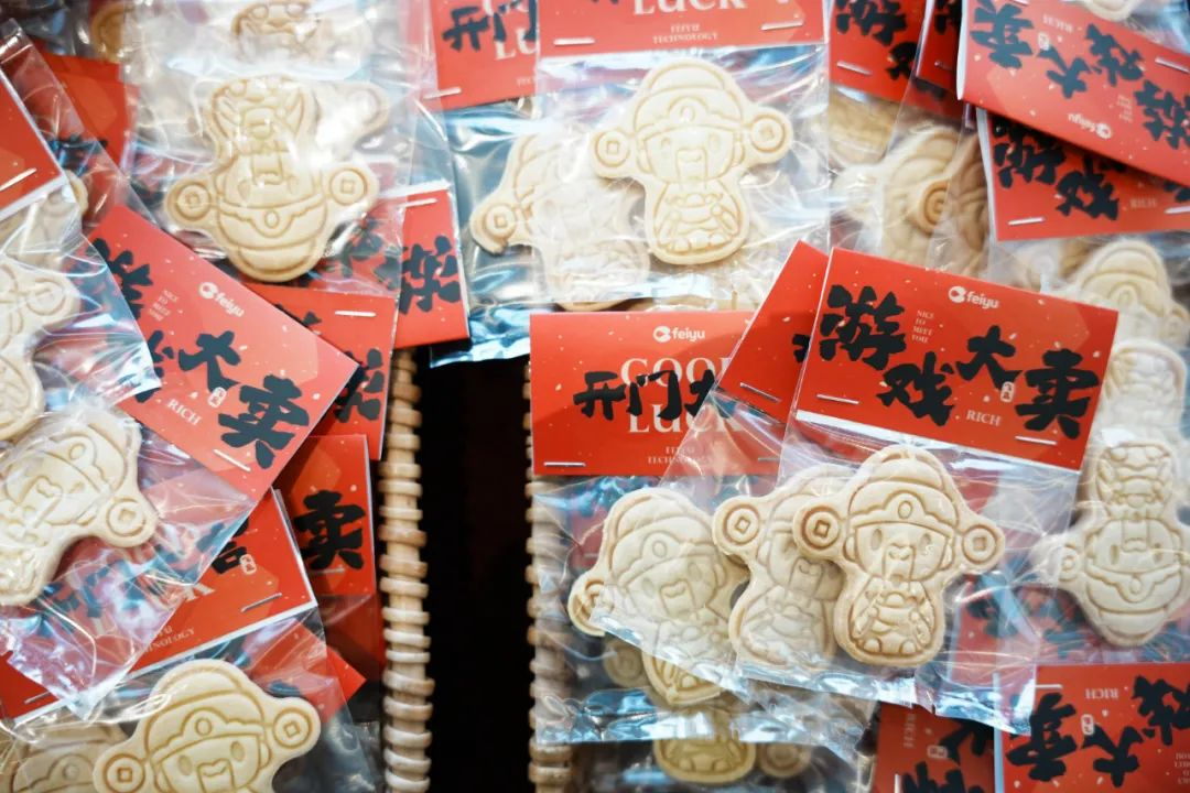 双手打开,财神发“财”~飞鱼科技为大家准备了财神饼干,并且由财神亲自派送到大家手中,仪式感满满。