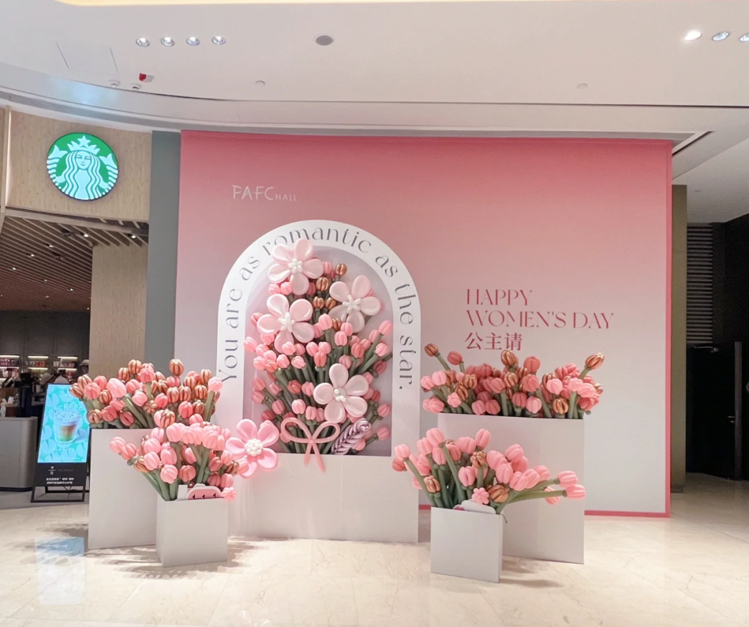 节日永远少不了氛围感的营造,还记得去年母亲节那个很火的巨型的“妈”吗,第一次看到的时候觉得超有创意,妇女节也可以沿用一下,试试用巨型的玫瑰花打造一个专属的打卡点。
