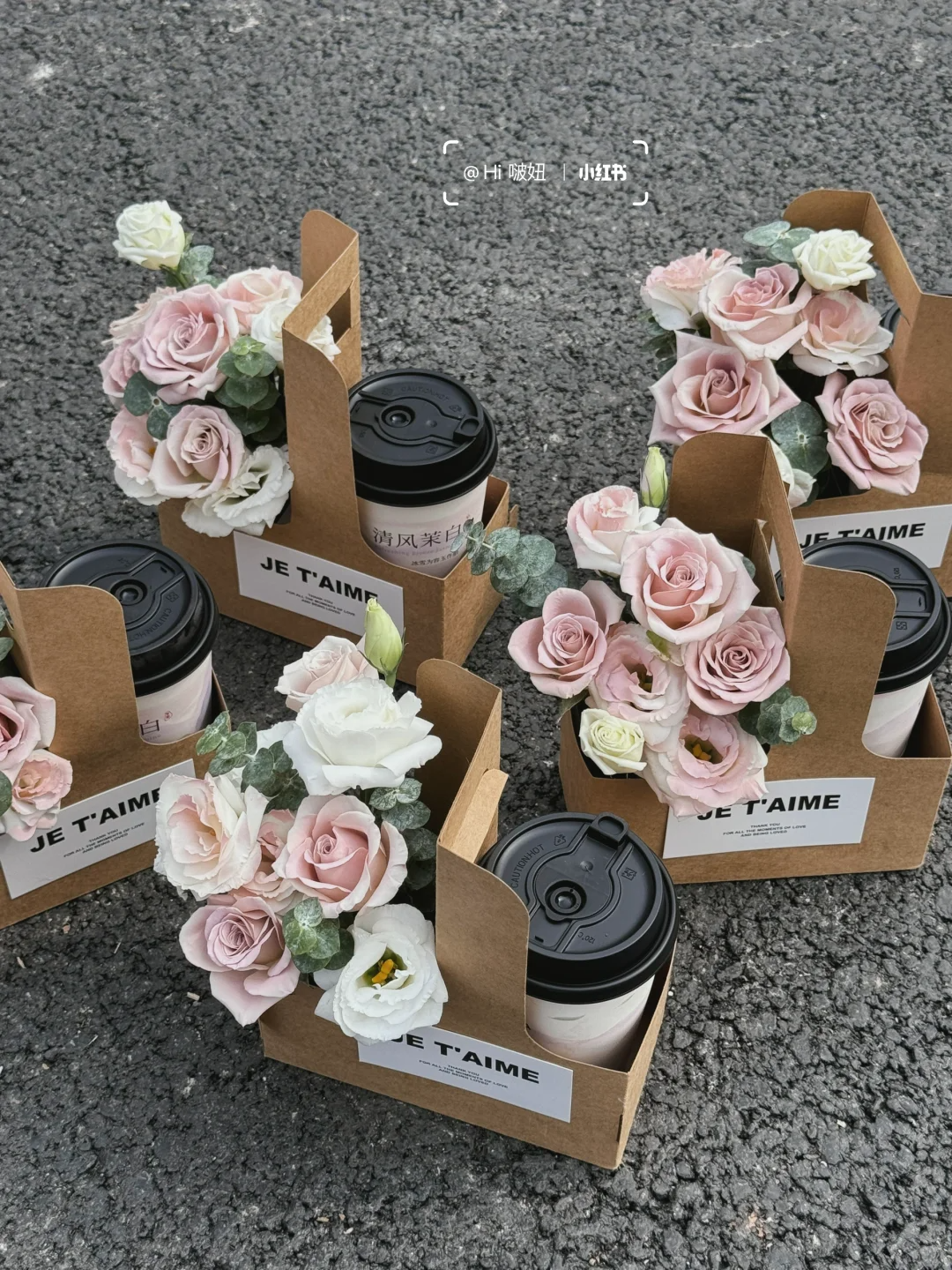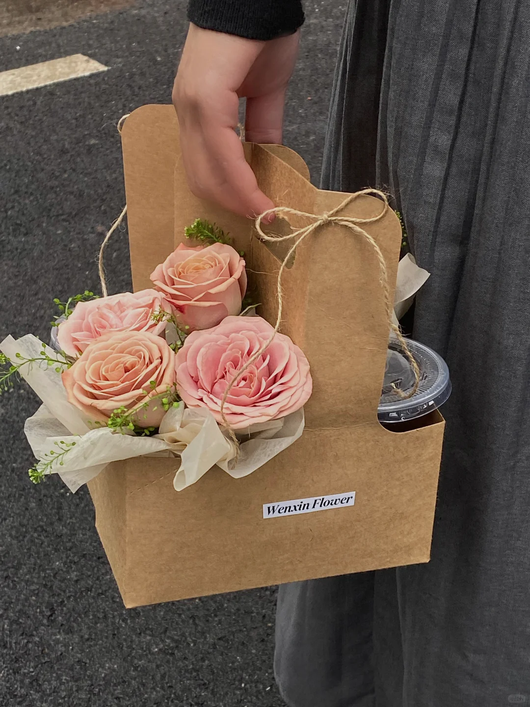 如果觉得鲜花不好拿,可以试试这个很火的鲜花奶茶手提盒,既有花又有奶茶,像礼物盒一样,仪式感也有了。