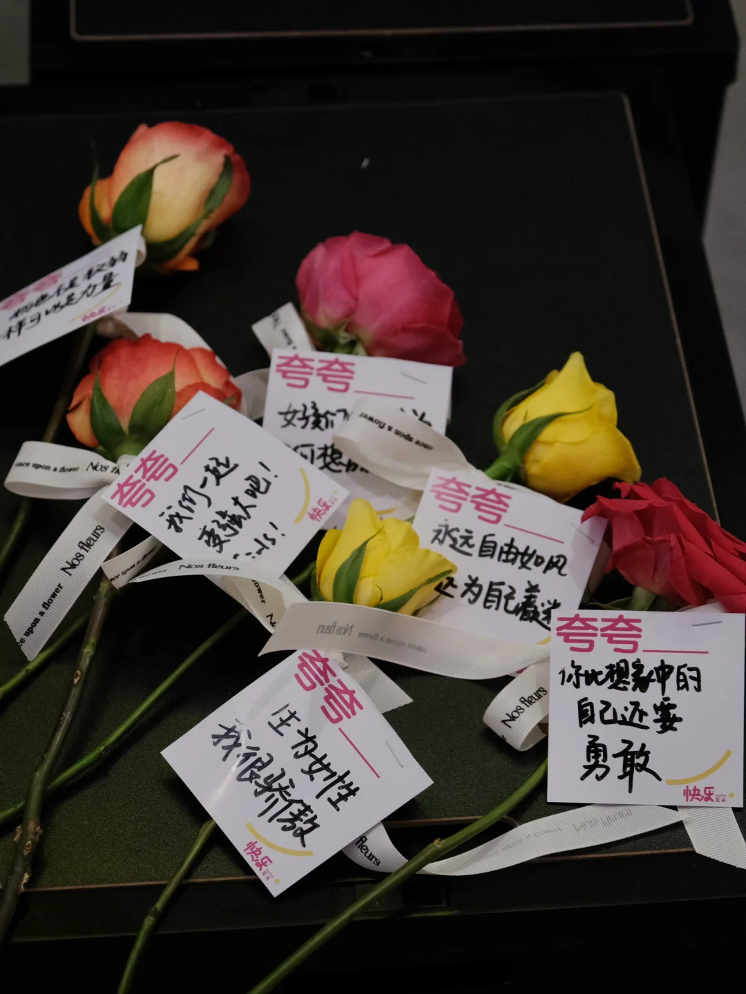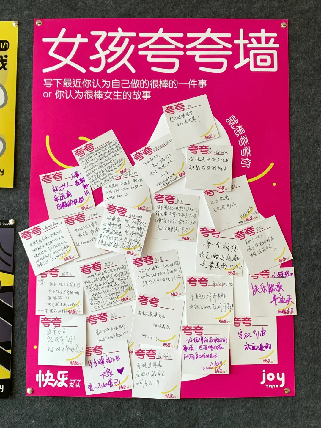 还可以在氛围布置上下点功夫,直接把对女孩们的夸夸放在公司,还可以吸引大家前来打卡。