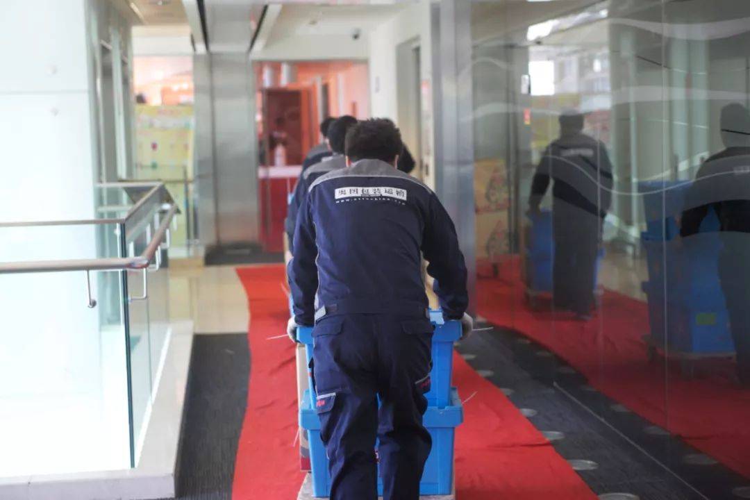 b.将分批回收完所有的搬迁塑料箱和其他辅助材料,撤除电梯、过道、墙角的包装材料并清除现场。
