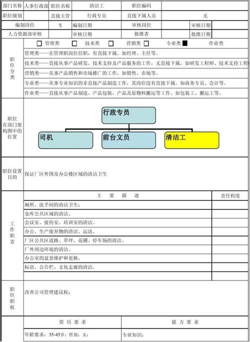 一个规范化的《岗位职责说明书》,一般包含:岗位概述、工作内容、岗位职责、岗位权力以及任职要求。