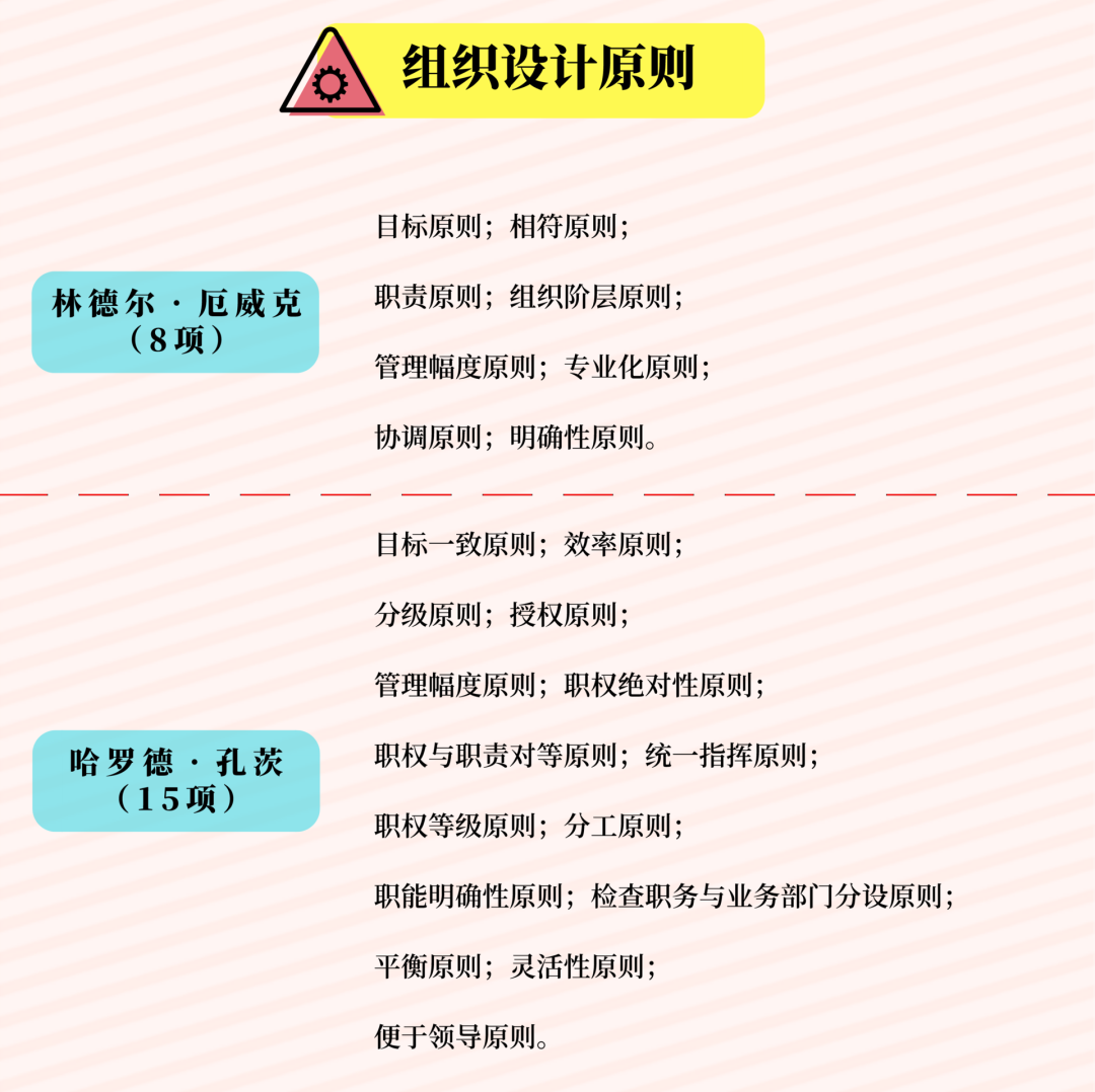 管理学家林德尔•厄威克及哈罗德•孔茨都曾提出过相应的组织设计原则理论,行政应依据自家企业实际情况加以设置。可参考确立以下原则并在后续组织设计中加以遵守: