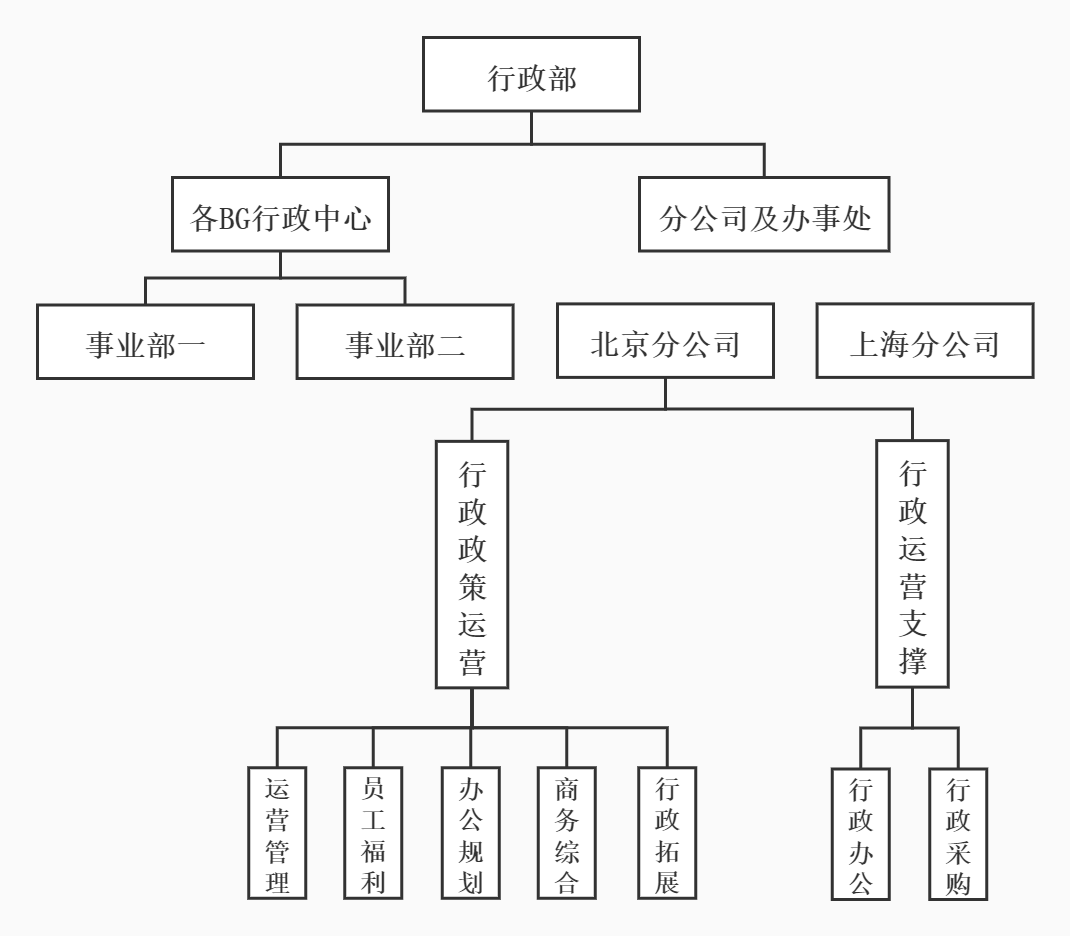 合理的行政组织架构,可以在相当程度上优化管理上的弊病,提高工作效率,帮助行政部更好地发挥作用。