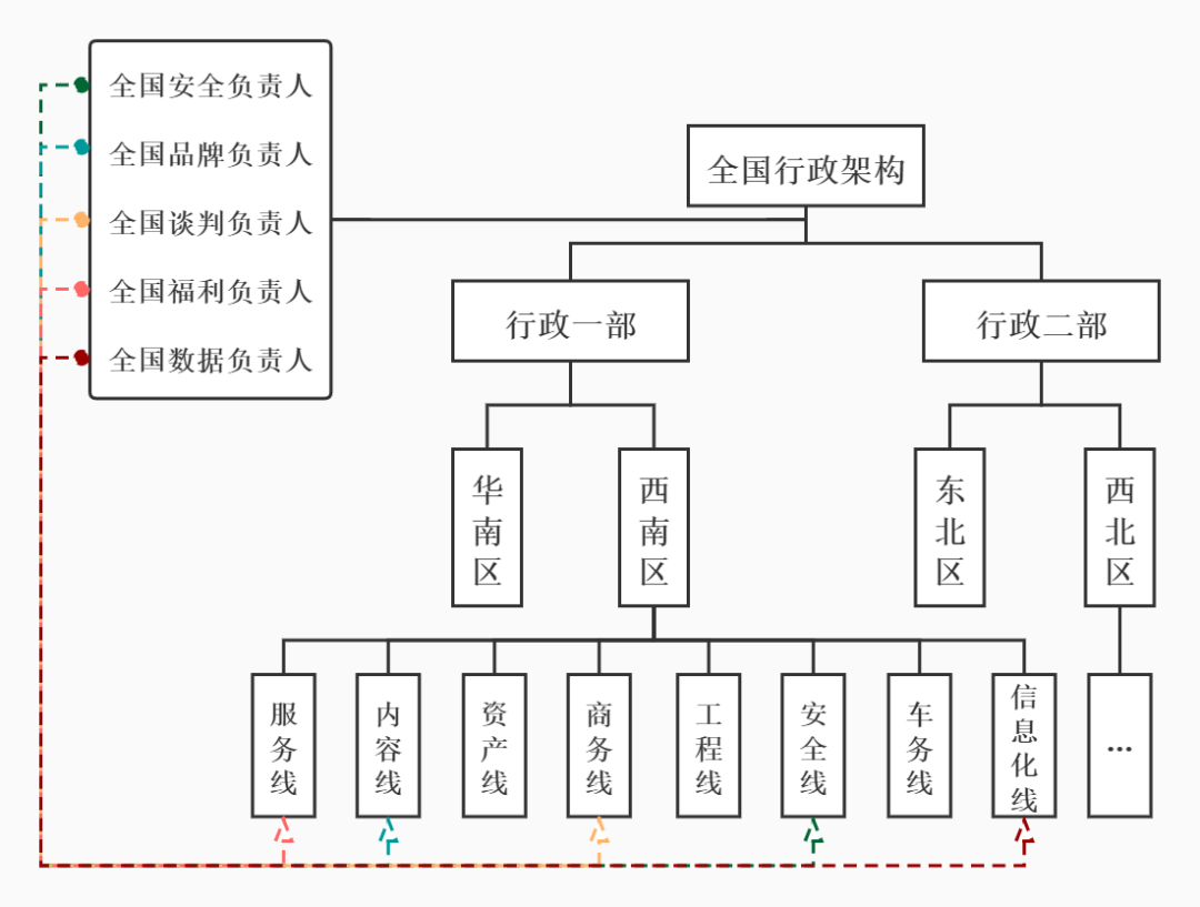 另外,还可设立各模块全国行政负责人,来完成横向、纵向的有机链接,充分发挥组织与调配的功效,更好地释放行政生产力。