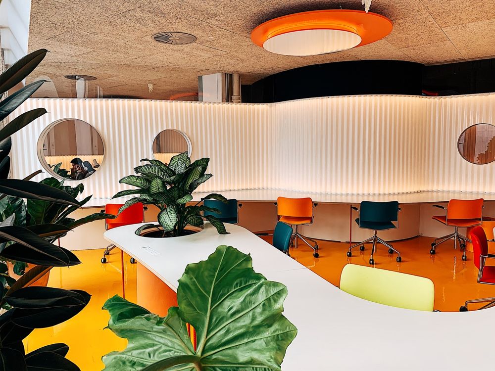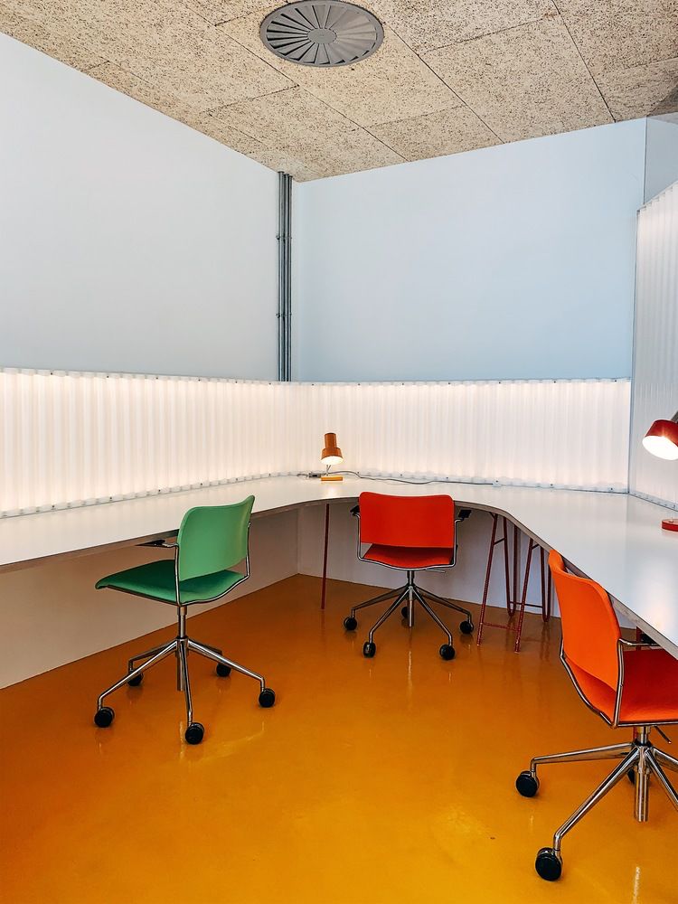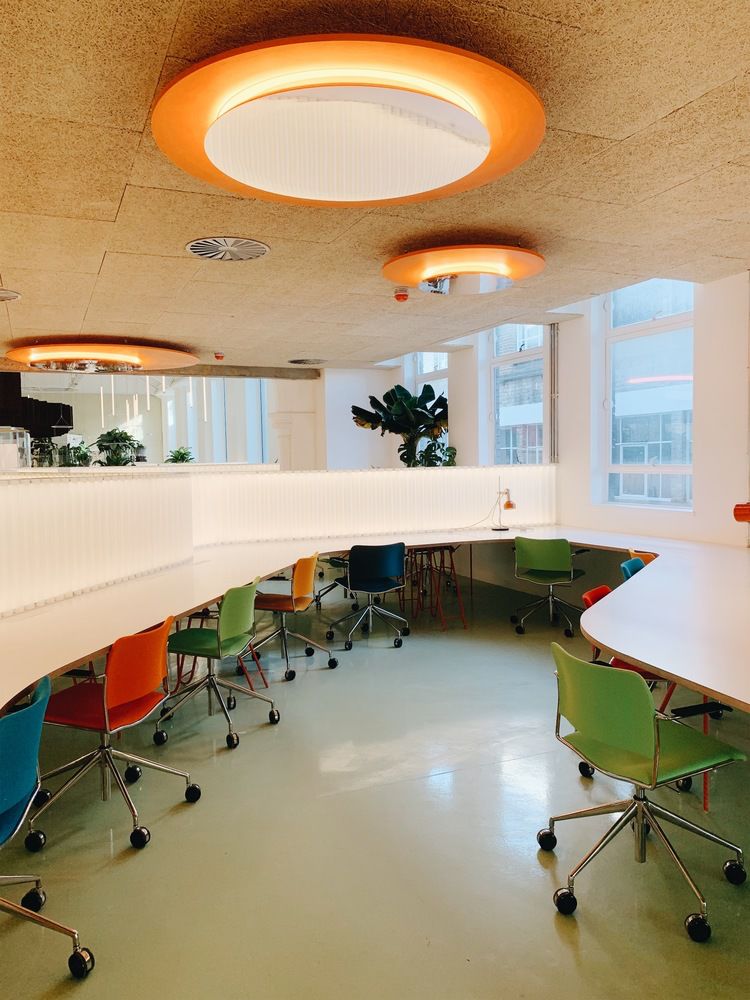 下面,我将从建筑、室内(办公空间)和各种配套设施来介绍这个共享办公空间的设计。